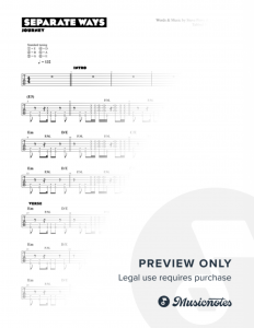 Here's the backing track for  Separate Ways with the lead guitars removed. Hit play to jam along, or download. You should also be able to change the playback speed.